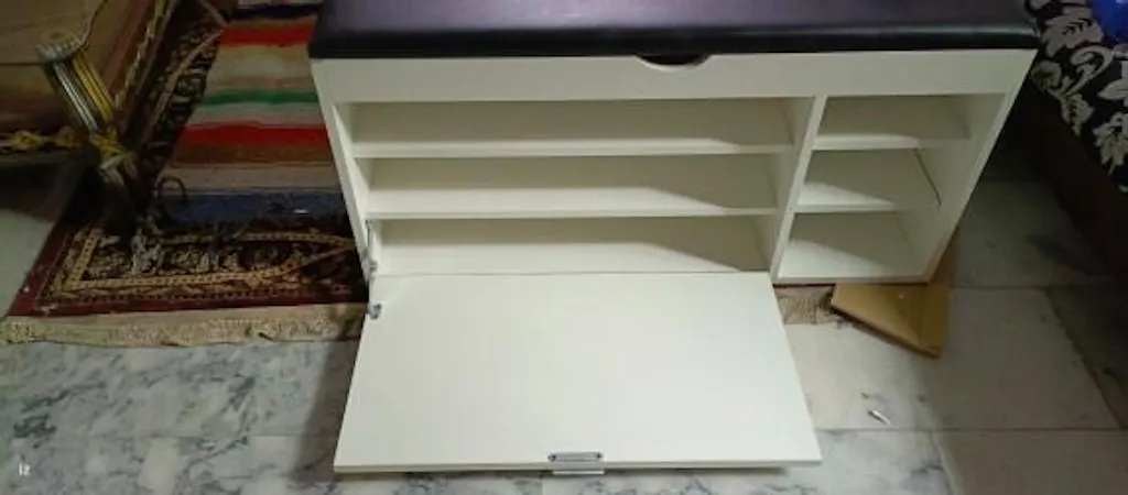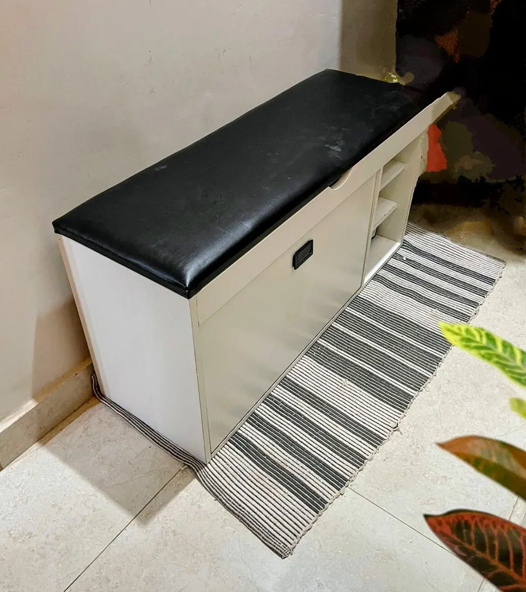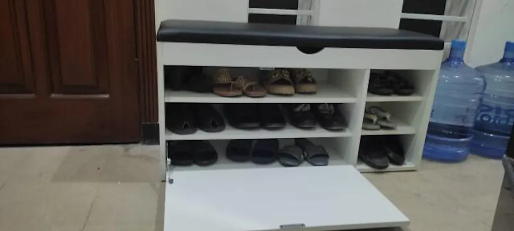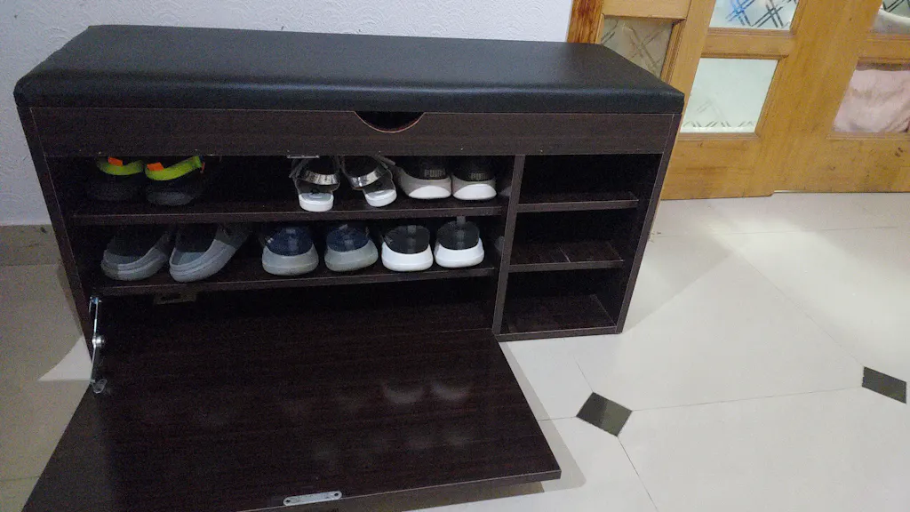With space for 12–15 pairs of shoes and a hidden top storage compartment for accessories or essentials, its compact yet spacious design keeps your home neat and organized.
