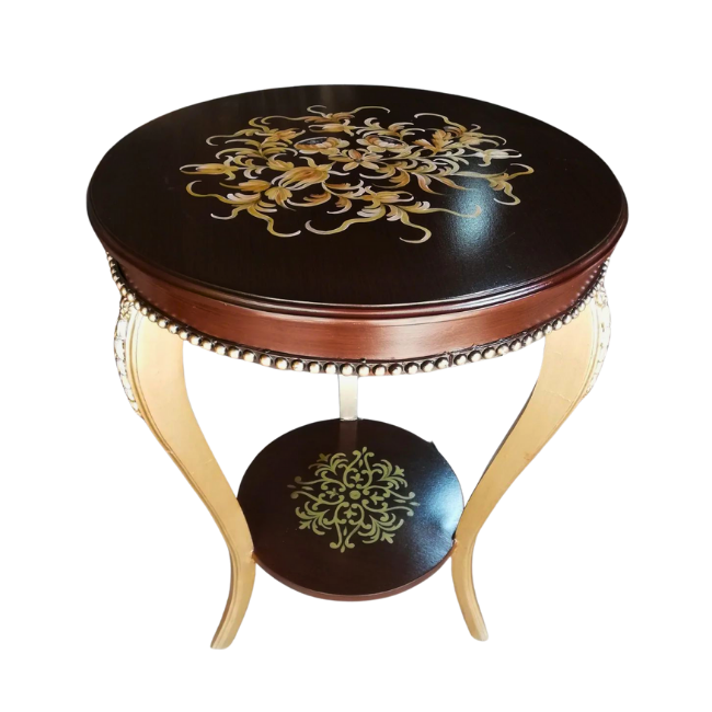 Elevate your living space with this stunning French end table, meticulously hand-painted with intricate designs. Crafted to embody both elegance and durability, this piece seamlessly blends classic French charm with a touch of nature.
