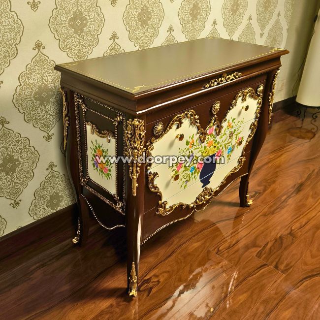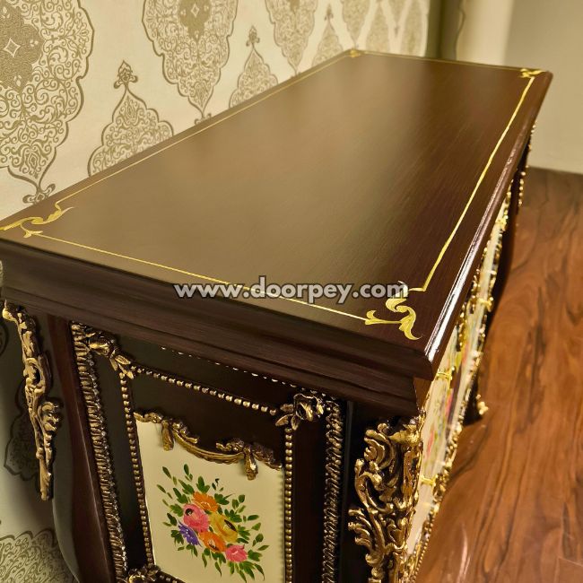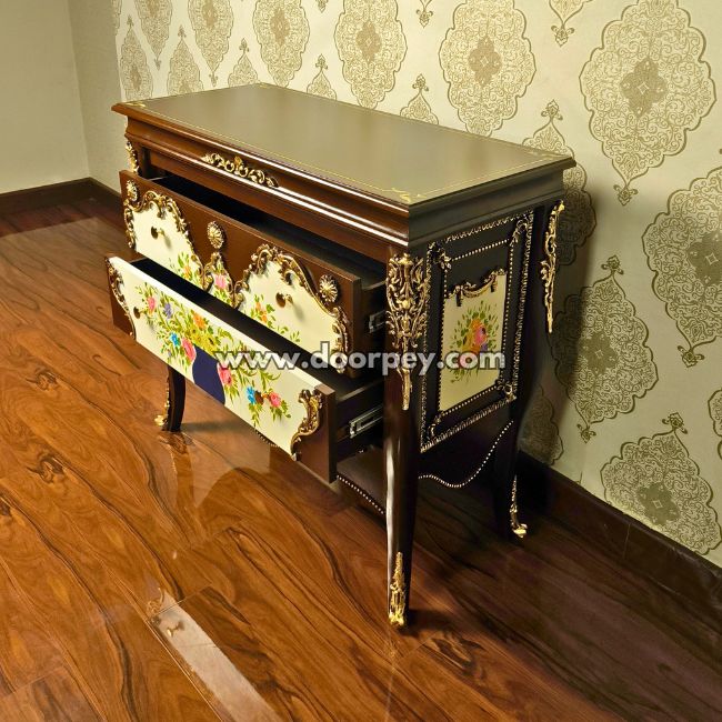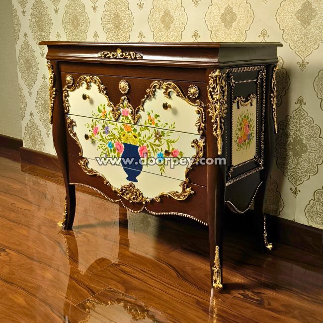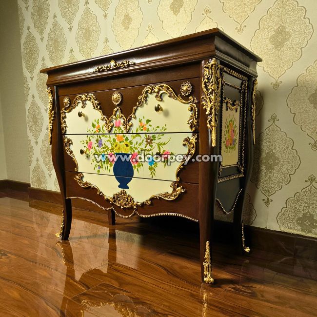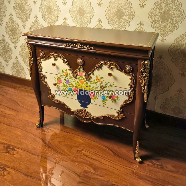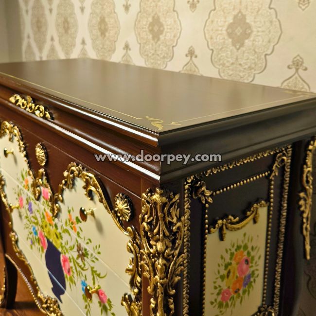 The chest features a stunning hand-painted design, meticulously created using oil paints and finished with deco paint for a vibrant and lasting finish. The artwork is sealed with a protective lacquer, ensuring the colors remain vibrant and the surface smooth for years to come.