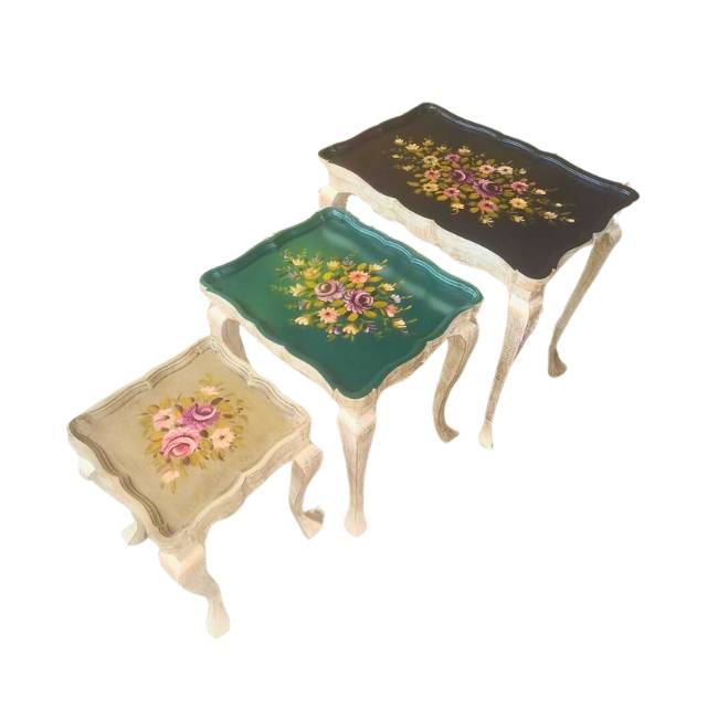 Discover our Wooden Hand-Painted Nesting Tables, where artistic flair meets practical design. Each set of three tables features intricate hand-painted details, from vibrant floral patterns to serene scenic views. Crafted from high-quality wood, these versatile pieces add a touch of charm to any space while optimizing functionality.
