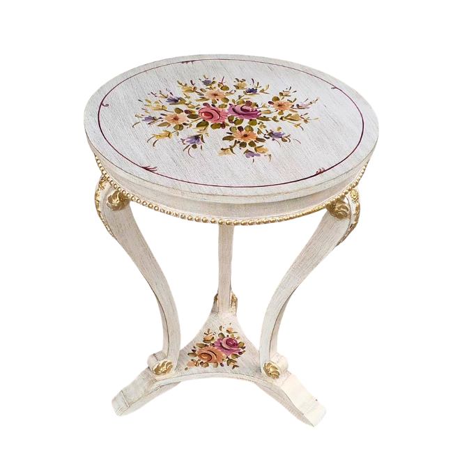 Elevate your living space with this stunning French end table, meticulously hand-painted with intricate designs. Crafted to embody both elegance and durability, this piece seamlessly blends classic French charm with a touch of nature.