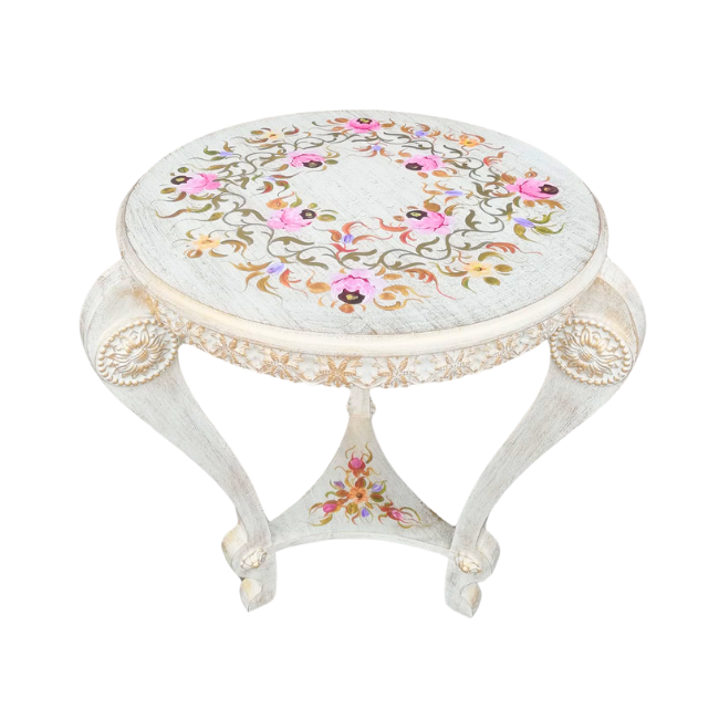 Elevate your living space with this stunning French end table, meticulously hand-painted with intricate designs. Crafted to embody both elegance and durability, this piece seamlessly blends classic French charm with a touch of nature.