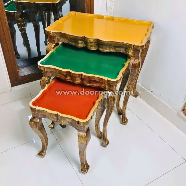 Designed for those who love lively interiors, the Festival Hues set adds personality and warmth to any room—whether used together or placed separately. Built with high-quality materials and expert craftsmanship, these tables offer both durability and artistic flair, making them perfect for living rooms, bedrooms, or eclectic corners.
