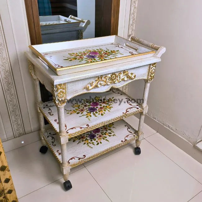 Elevate your home decor with our beautifully crafted hand-painted wooden trolleys, designed to combine functionality with artistic elegance.