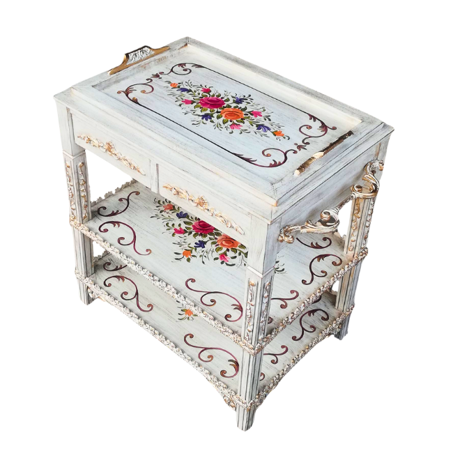 Floral Grace Trolley - Removable Tray Top & Drawer