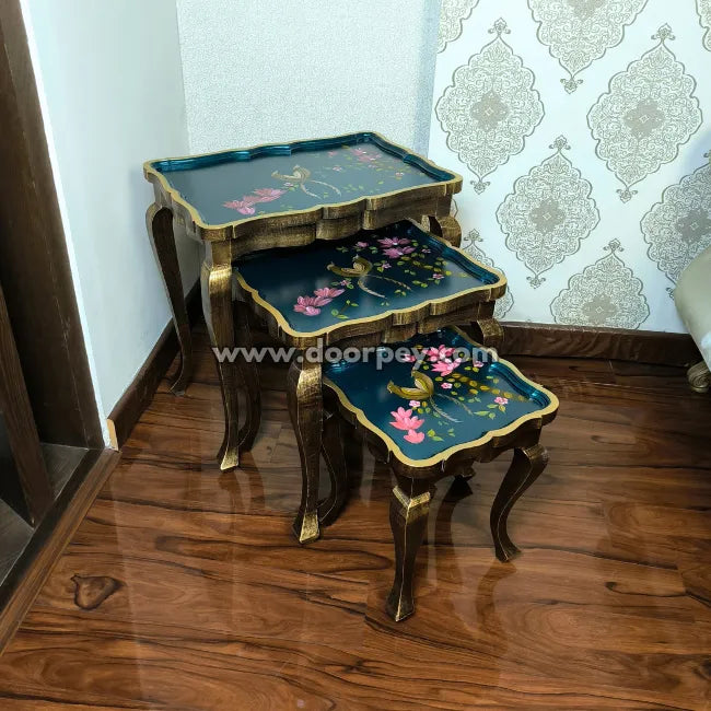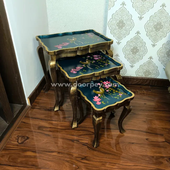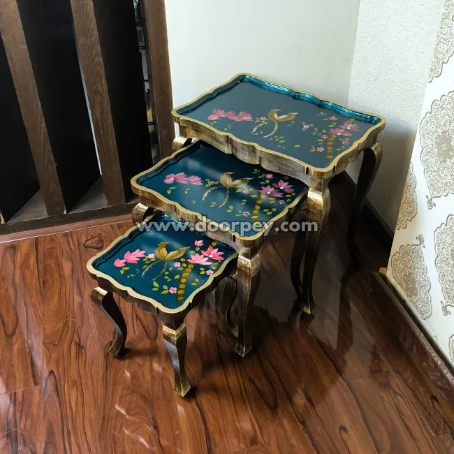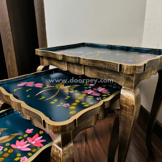Discover our Wooden Hand-Painted Nesting Tables, where artistic flair meets practical design. Each set of three tables features intricate hand-painted details, from vibrant floral patterns to serene scenic views. Crafted from high-quality wood, these versatile pieces add a touch of charm to any space while optimizing functionality.