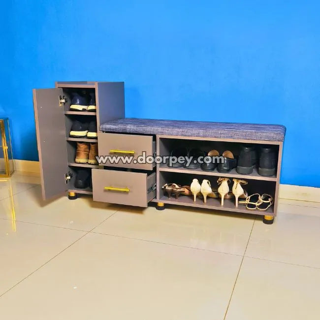 The Luxe Stack Shoe Rack is the epitome of modern design and functionality. Featuring a contemporary style, this shoe rack doubles as a comfortable bench, adding both elegance and practicality to your home.