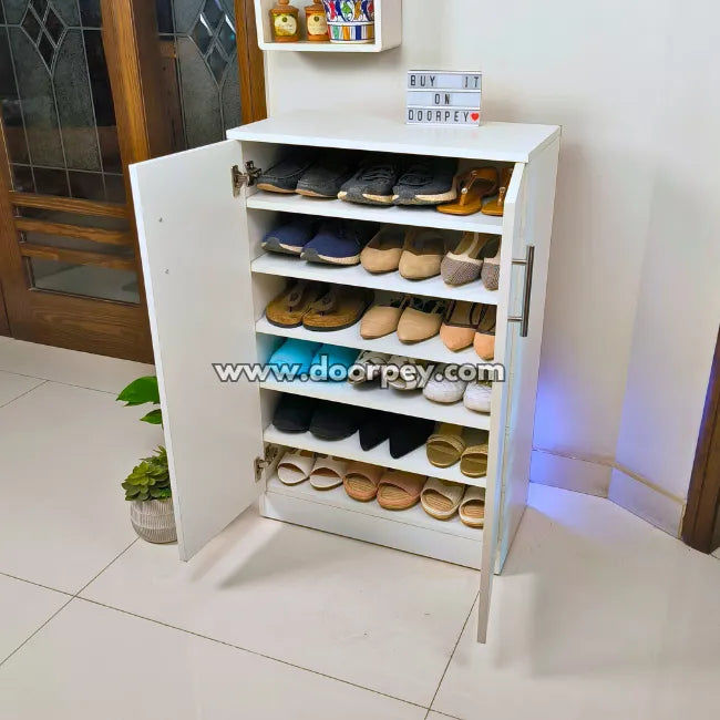 The Mod Step Shoe Organizer is the perfect solution for keeping your footwear organized while adding a touch of modern elegance to your space. Featuring six spacious shelves enclosed by two hinged cabinet doors, this shoe organizer is ideal for maintaining a clean and clutter-free home.
