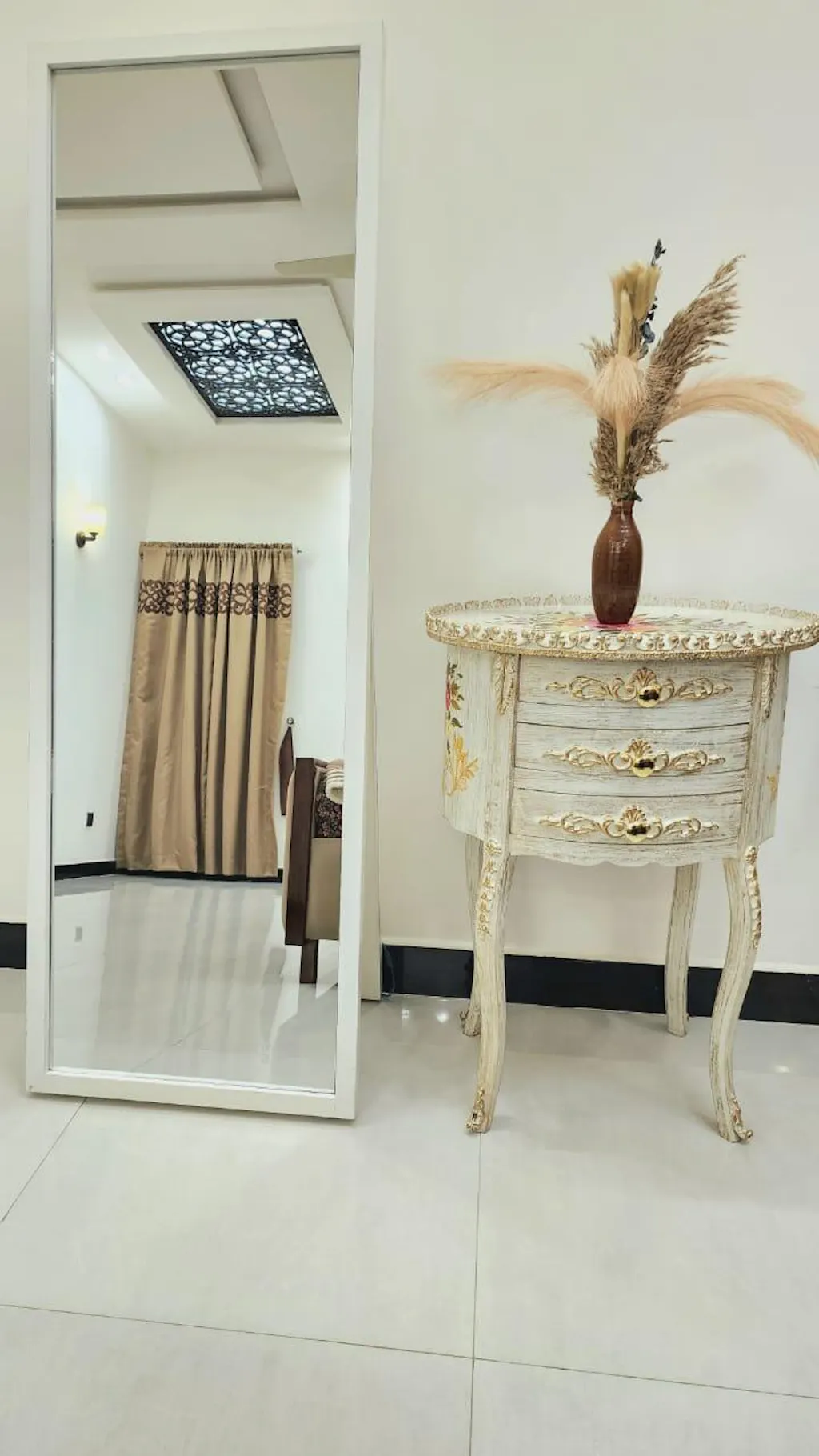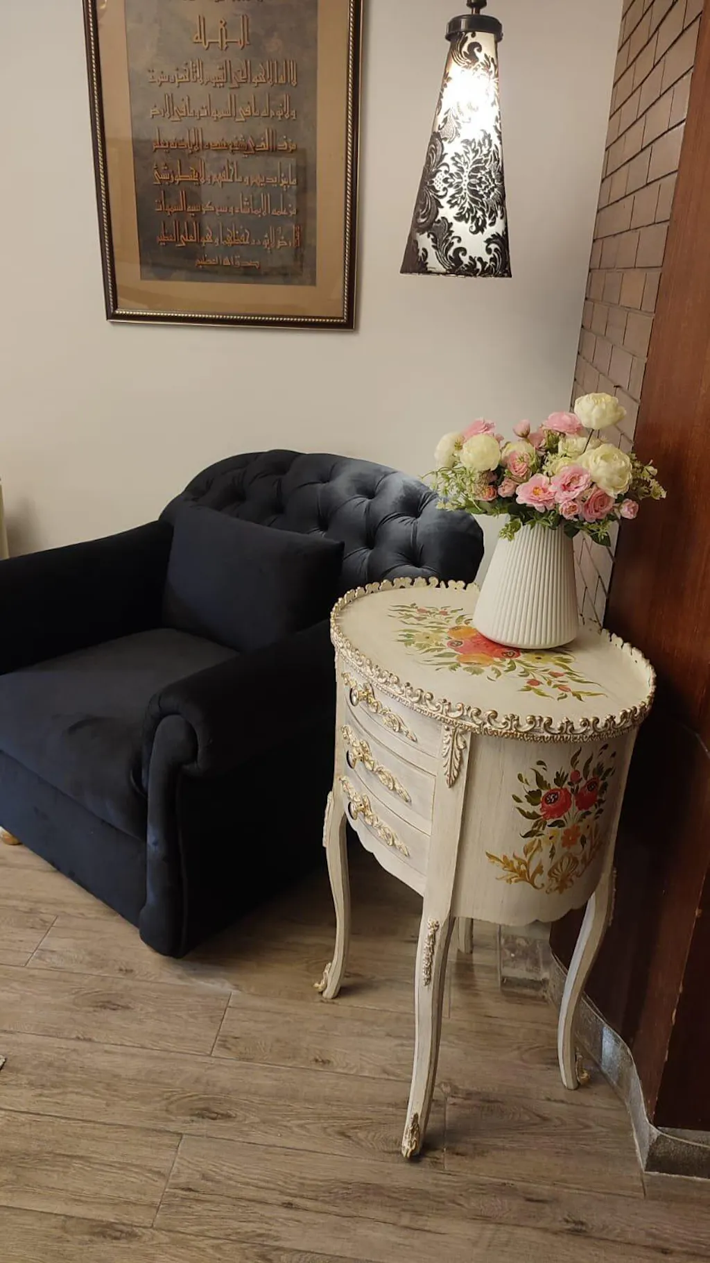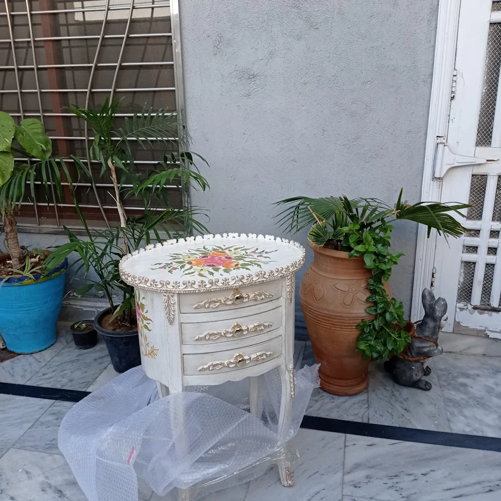 Its high-quality paint finish adds to its charm and durability. Perfect for entryways or corners, this table will elevate any room design.