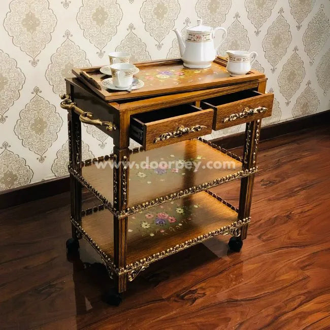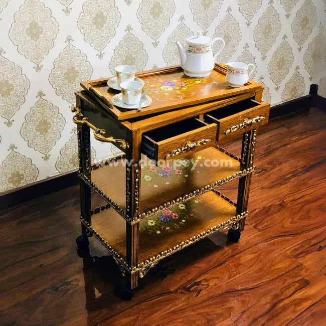 Golden Grace Trolley - Removable Tray Top & Two Drawers