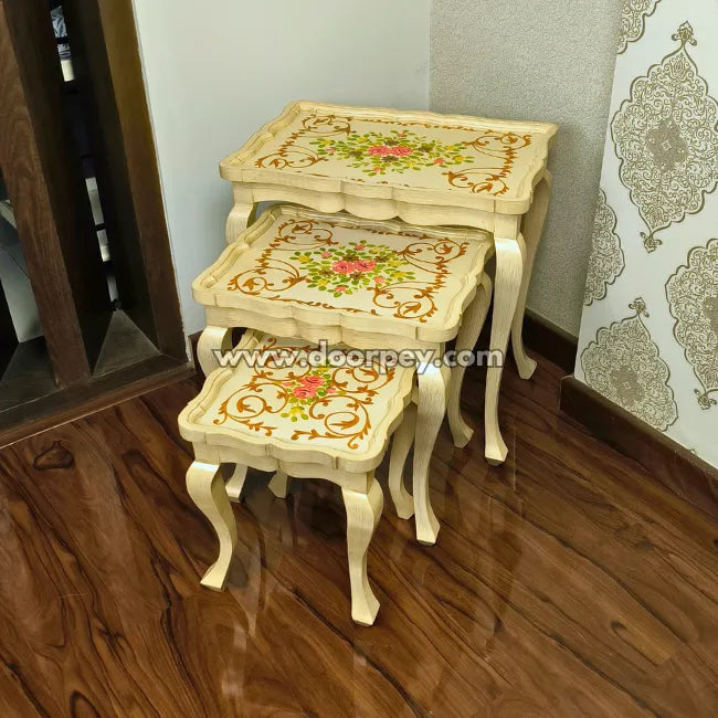 Discover our Wooden Hand-Painted Nesting Tables, where artistic flair meets practical design. Each set of three tables features intricate hand-painted details, from vibrant floral patterns to serene scenic views. Crafted from high-quality wood, these versatile pieces add a touch of charm to any space while optimizing functionality.