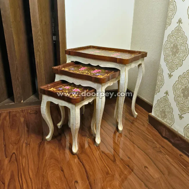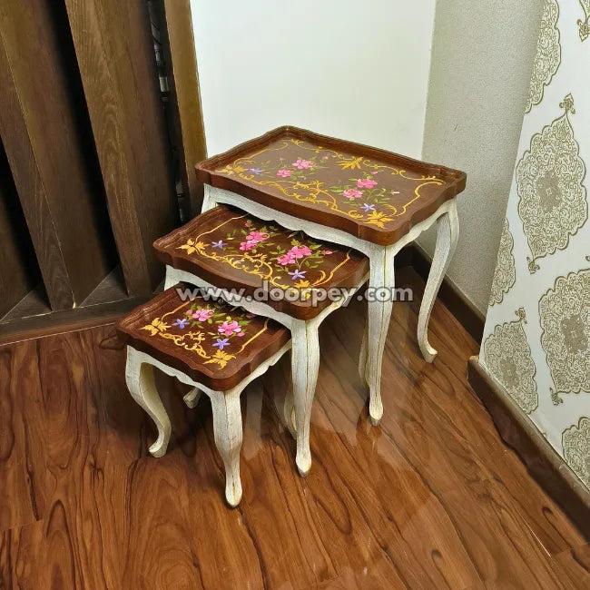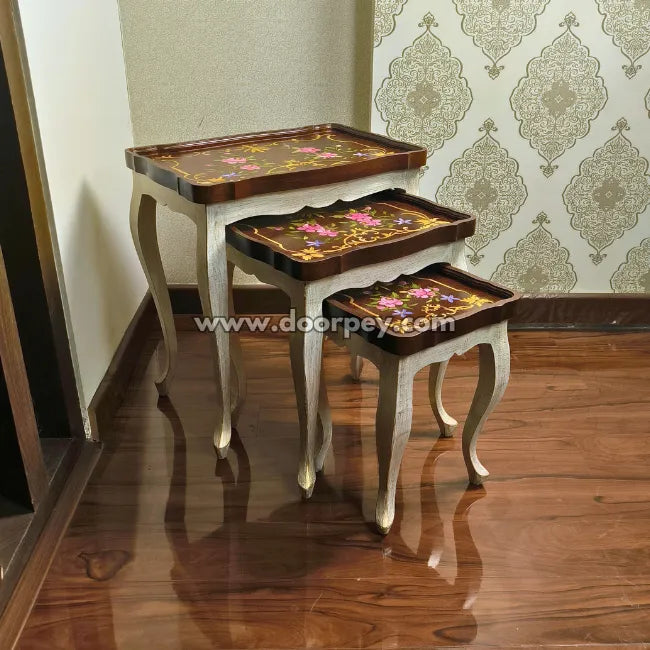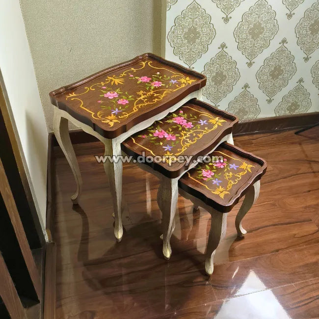Discover our Wooden Hand-Painted Nesting Tables, where artistic flair meets practical design. Each set of three tables features intricate hand-painted details, from vibrant floral patterns to serene scenic views. Crafted from high-quality wood, these versatile pieces add a touch of charm to any space while optimizing functionality.