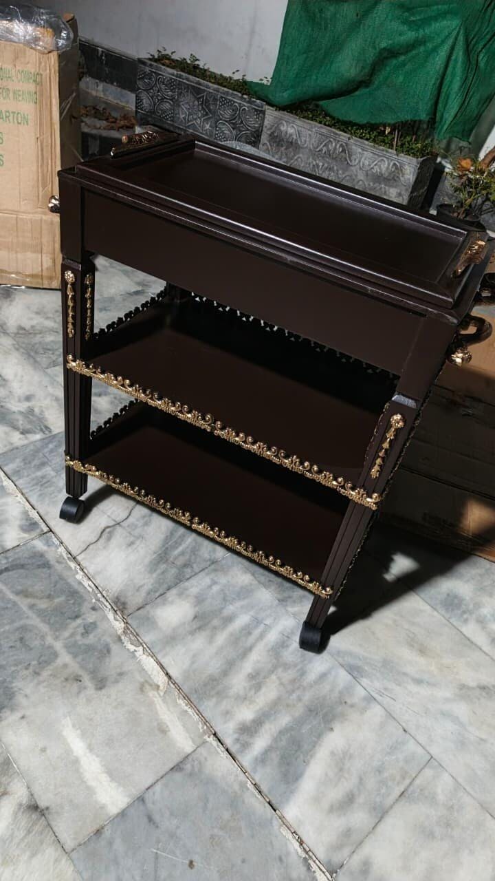 Imperial Gold Wooden Trolley – Removable Tray Top & Drawer