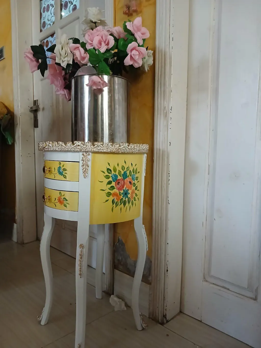 Its high-quality paint finish adds to its charm and durability. Perfect for entryways or corners, this table will elevate any room design.