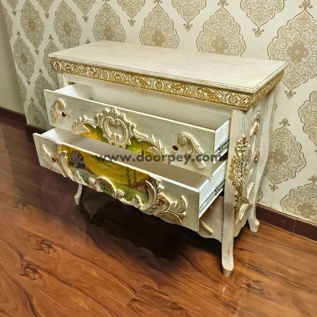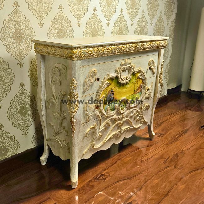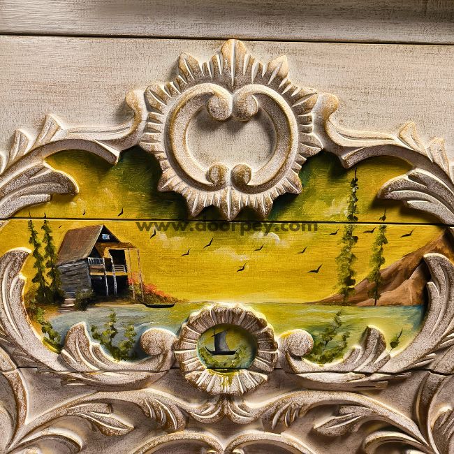 The chest features a stunning hand-painted design, meticulously created using oil paints and finished with deco paint for a vibrant and lasting finish. The artwork is sealed with a protective lacquer, ensuring the colors remain vibrant and the surface smooth for years to come.
