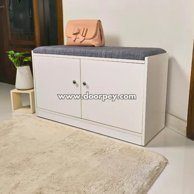 The Urban Stash Shoe Rack offers the perfect blend of elegance and functionality, designed to keep your footwear organized while doubling as a comfortable bench. Featuring a simple yet modern design, this shoe rack includes multiple compartments and two cabinet doors, providing ample storage space to declutter your home.