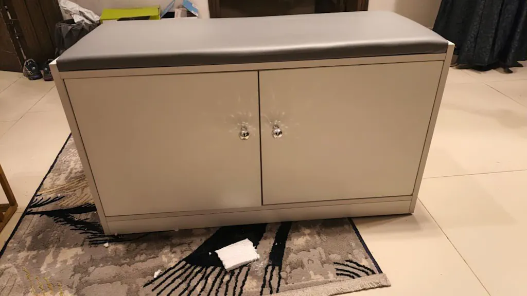 - Ample Storage: Multiple compartments with two cabinet doors for organized storage.