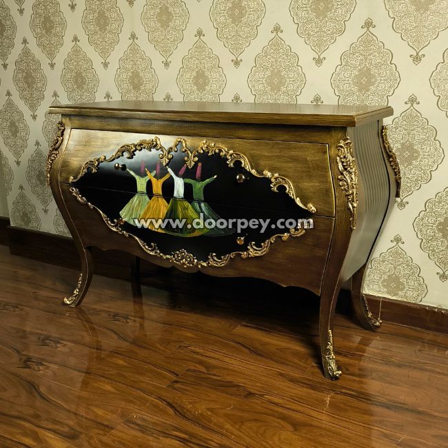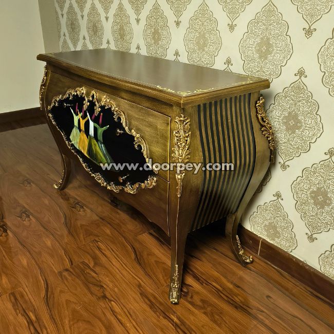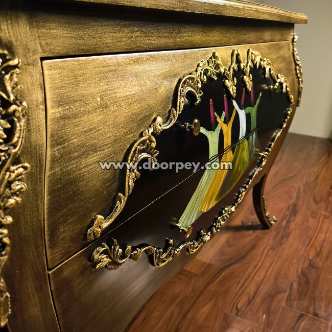 The chest features a stunning hand-painted design, meticulously created using oil paints and finished with deco paint for a vibrant and lasting finish. The artwork is sealed with a protective lacquer, ensuring the colors remain vibrant and the surface smooth for years to come.