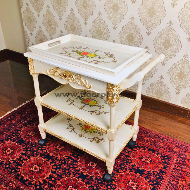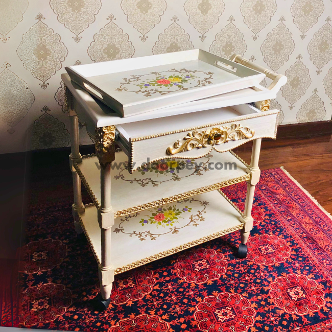 Elevate your home decor with our beautifully crafted hand-painted wooden trolleys, designed to combine functionality with artistic elegance.