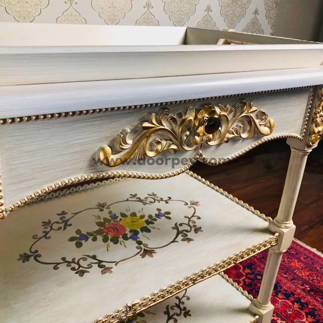 Floral Grace Trolley - Removable Tray Top & Drawer